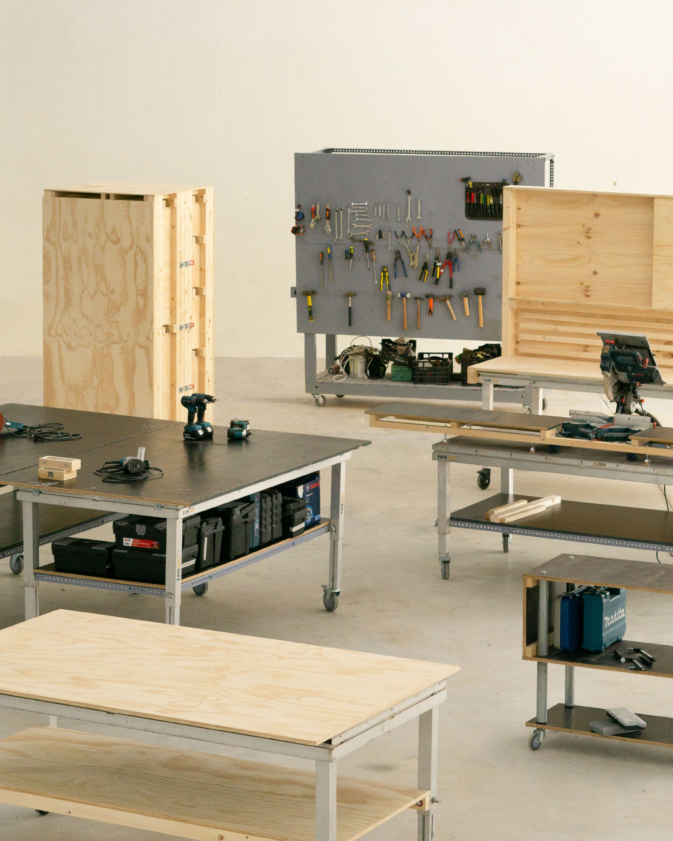 Ubicado en Cigarreras, el taller fue diseñado mayormente a partir de una serie de plataformas sobrantes del propio centro.