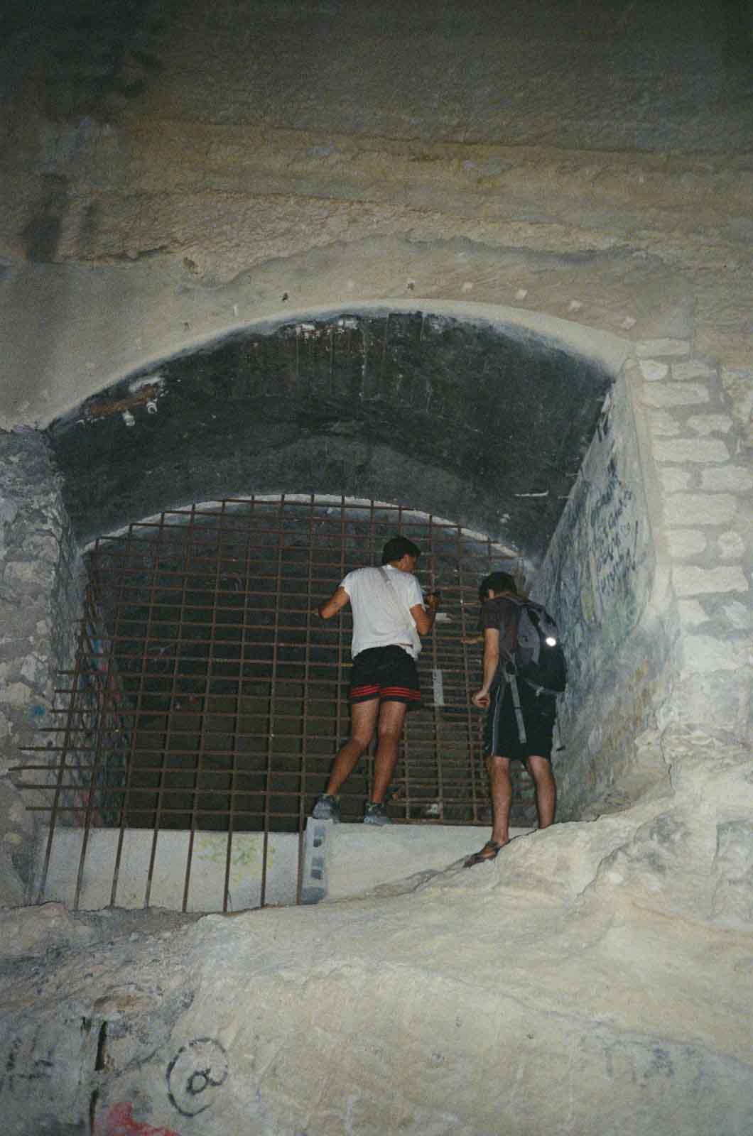 Intentamos entrar por la boca. Hay dos candados nuevos, los otros dos parece que llevan unos años ya. Probamos con las otras aberturas: más de lo mismo. ¿pero no solía la gente colarse aquí sin más? Cuentan que hay un respiradero desde el que a la hora precisa se cuela un rayo de sol en una de las galerías. Al día siguiente buscamos esa entrada escalando la montaña. Desde arriba se ve el final del cielo, con la sensación de estar caminando sobre un gran agujero. Un sitio que se hizo para dejar inmóvil el combustible, digamos, lo contrario a su naturaleza, la de combustirse.