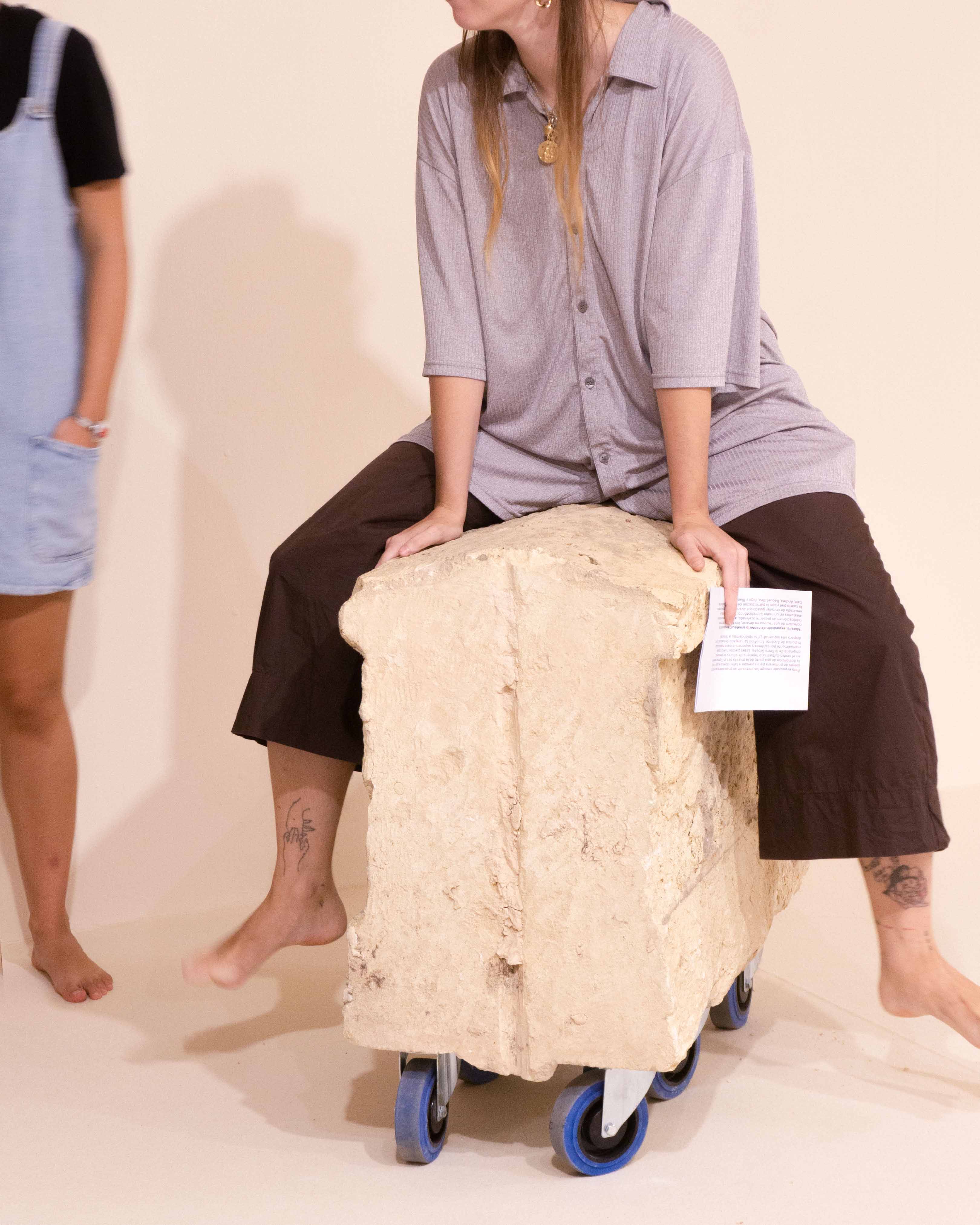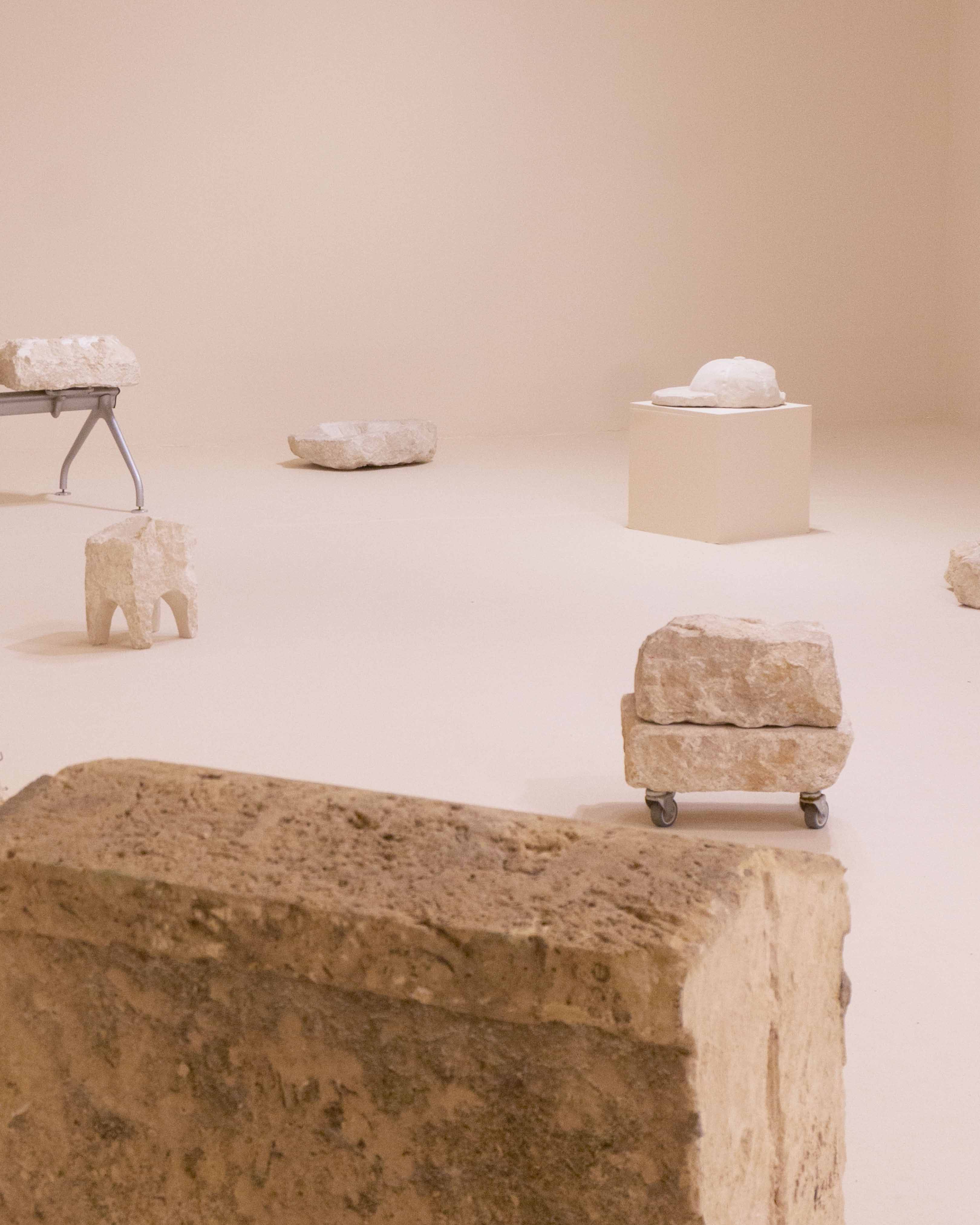 "Muralla: exposición de cantería amateur" explora el aprendizaje colectivo de una técnica en desuso, los tiempos lentos de tallado y fabricación en un presente acelerado, así como la creación de objetos aleatorios en un material prehistórico: la piedra.